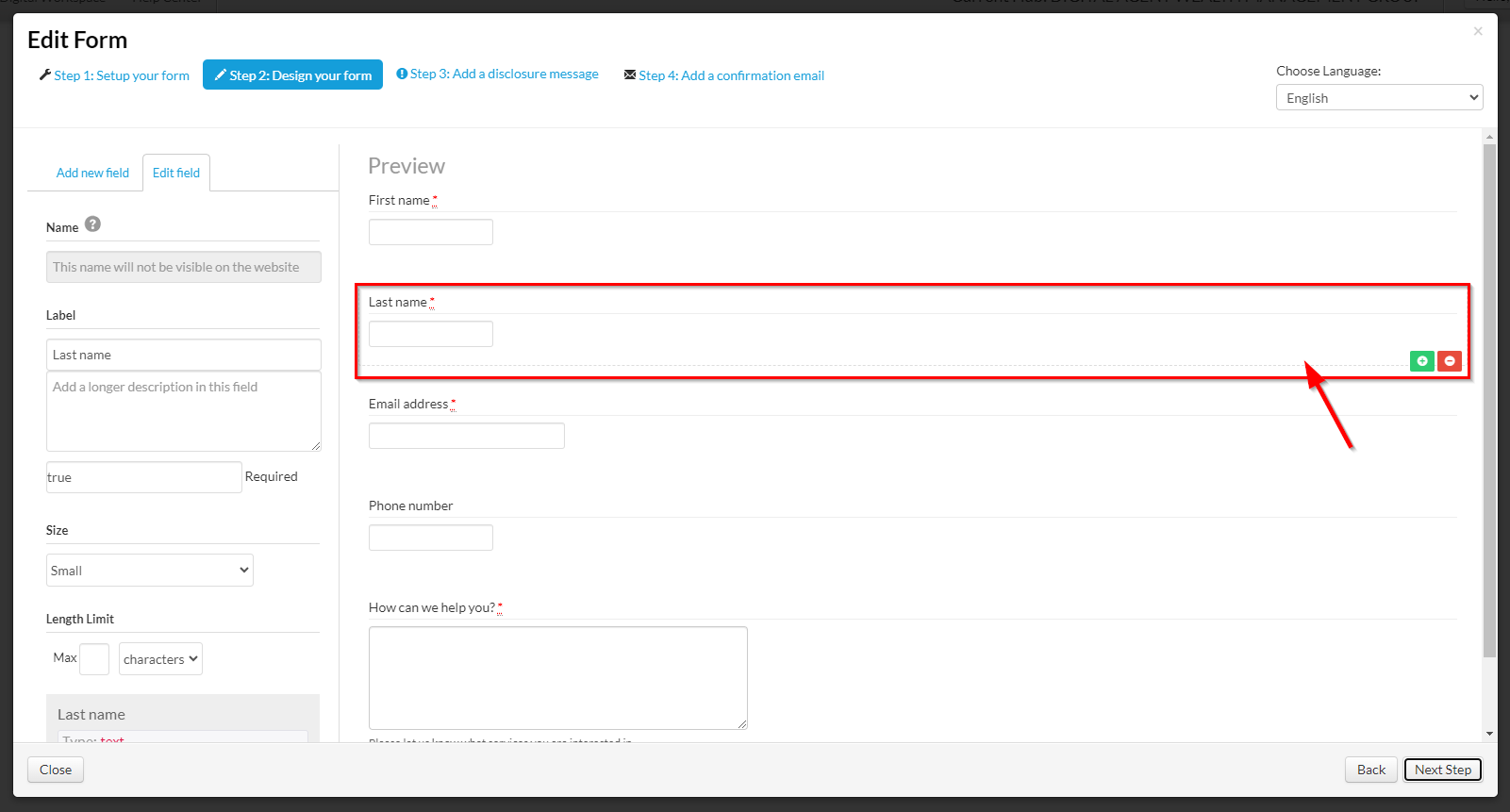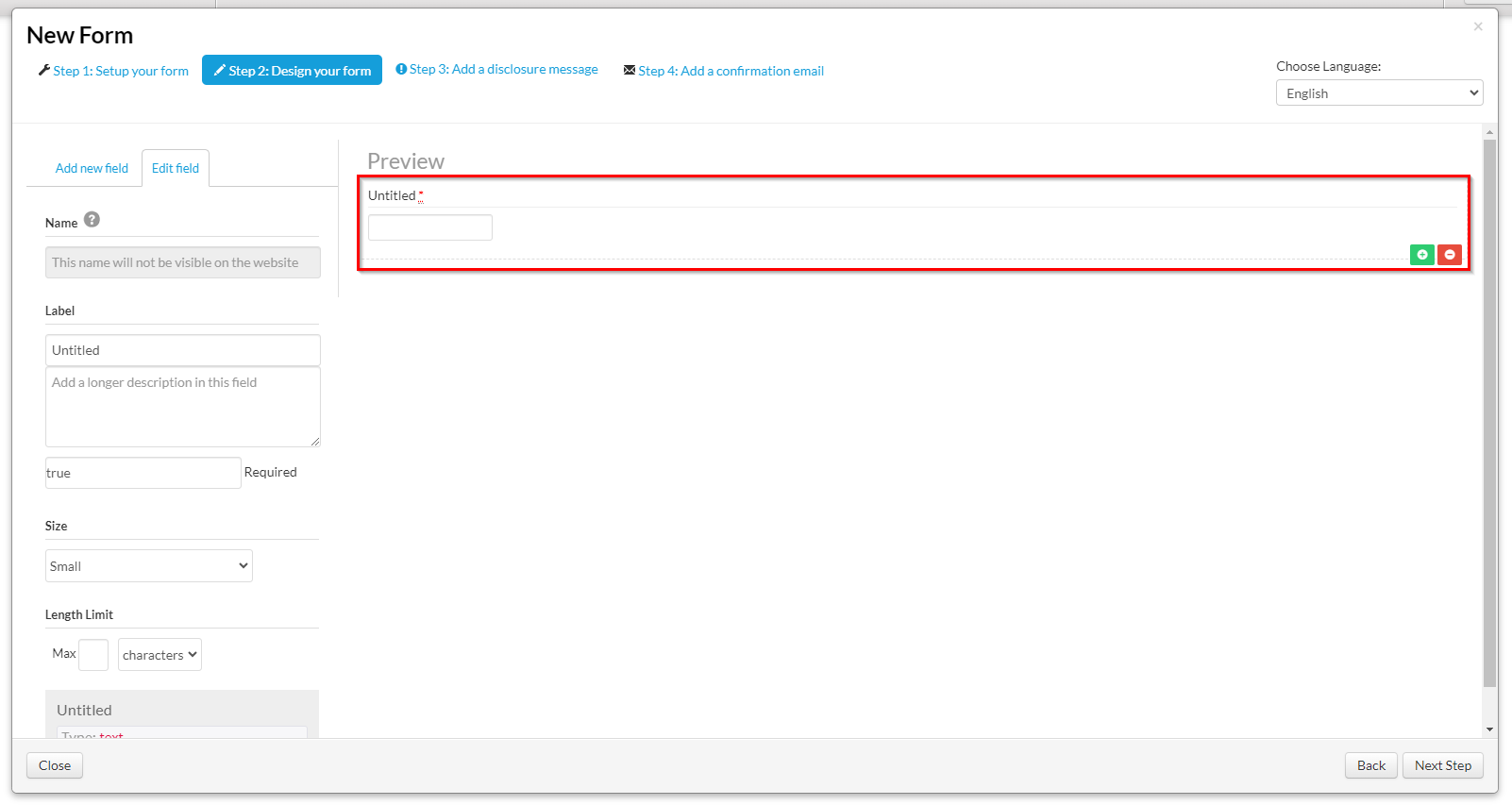 2. The new field will now appear in the Preview column on the right. You can configure it using the options in the Edit Field tab in the left column.