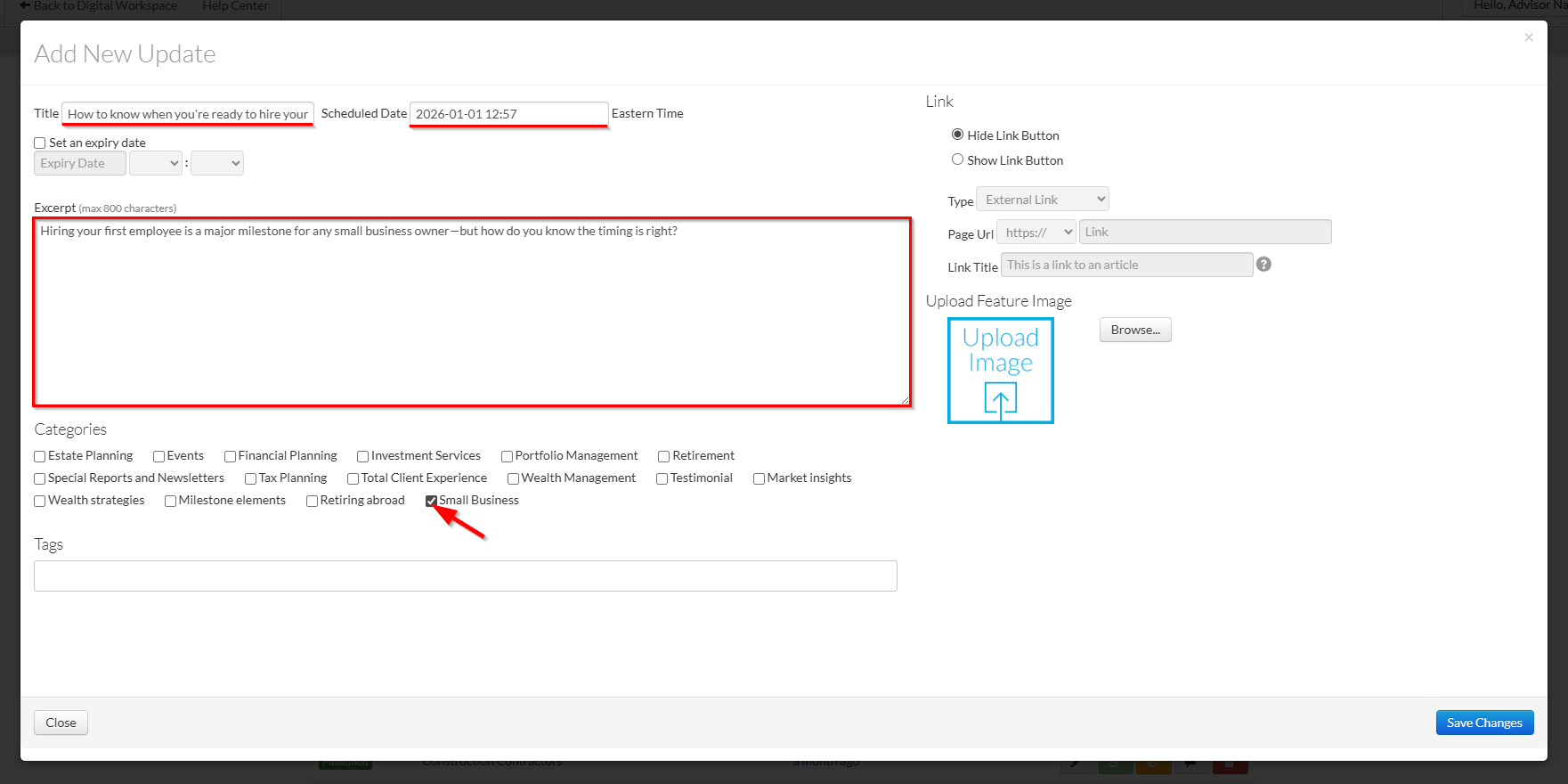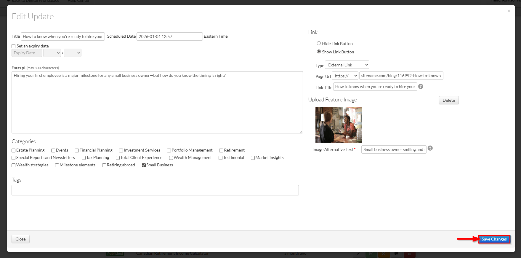 8. Once you've added your information, click Save changes to save your update as a Draft.