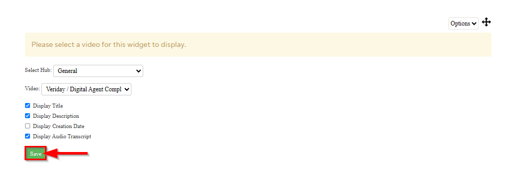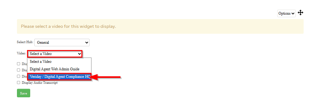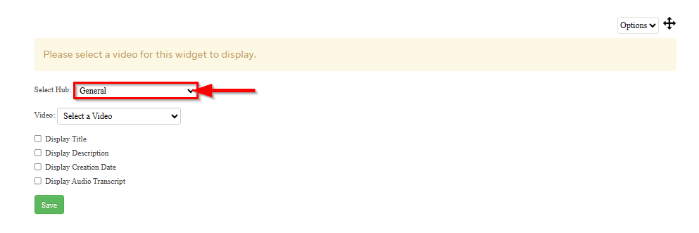 a. In the first drop-down menu, select the Hub you'd like to load the video from.