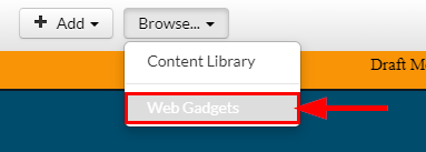 2. Click the Browse... button and select Web Gadgets from the drop-down menu.