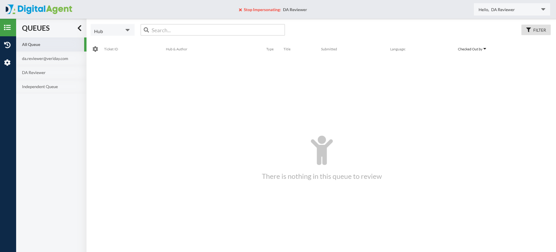 If no submissions are present in the queue, a "There is nothing in this queue to review" message will display.